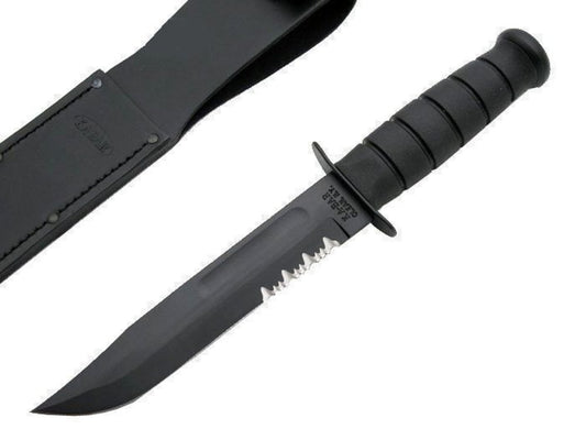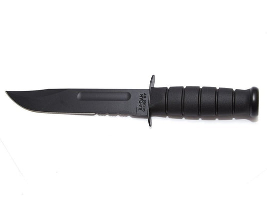 KA-BAR Fighting/Utility Knife, Black, Black Hard Sheath, Serrated Edge #1214