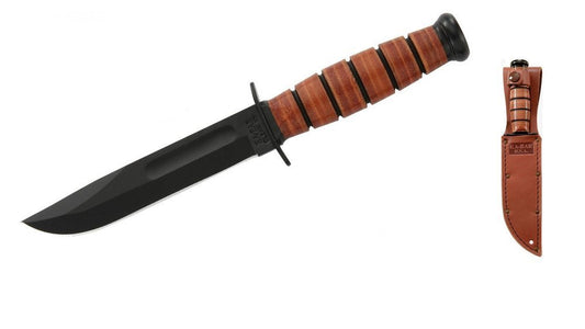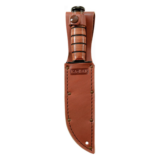 Ka-Bar Short USA Tactical Knife, Brown Leather Sheath, Fixed Blade #1251CP