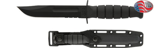 KA-BAR Short, Black, Serrated Edge, + Hard Sheath, Made in USA #1259
