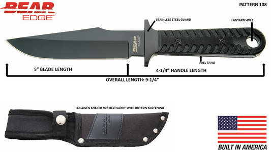Bear and Son 9-1/4 in. G10 Handle Compact Bowie Knife W/Ballistic Sheath #61108