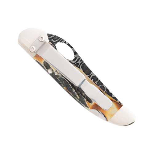 Bear and Son 3-3/4? Genuine India Stag Bone Damascus Locking Cowhand Knife #5149LD