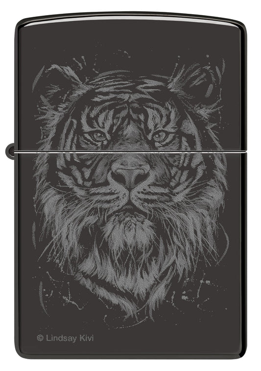 Zippo Lindsay Kivi The Big Cat Tiger, High Polish Black Lighter #48935