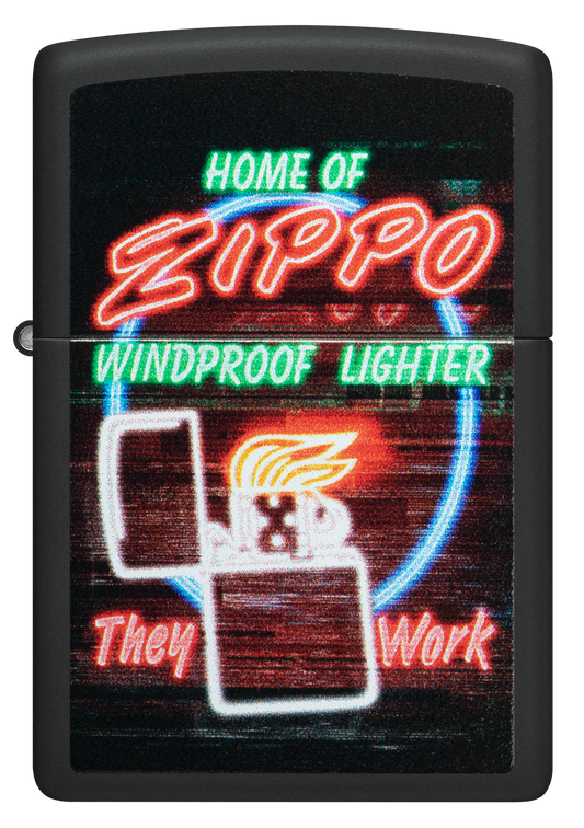 Zippo Neon Sign Design, Black Matte Lighter #48455