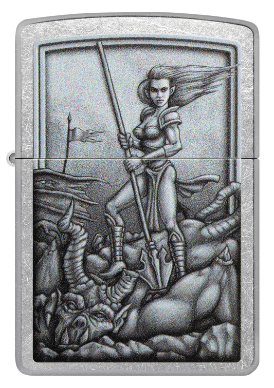 Zippo Mythical Warrior Design, Black Matte Finish, Windproof Lighter #49405