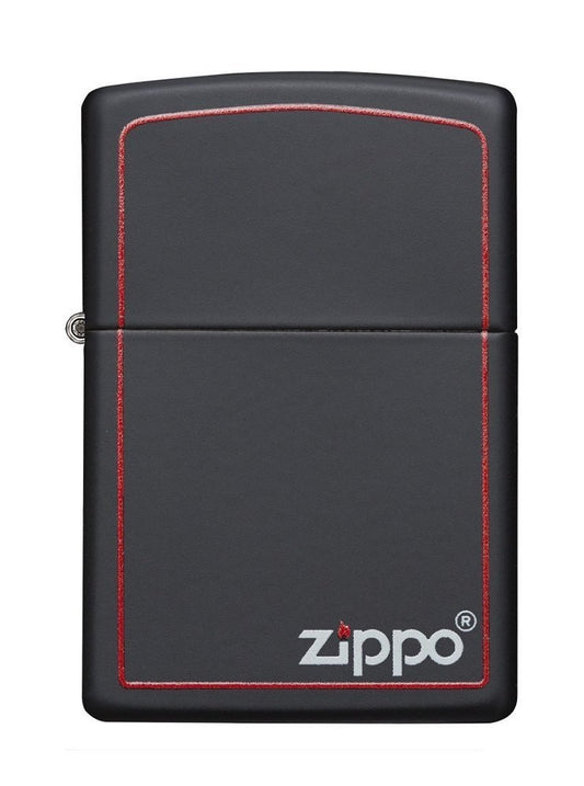 Zippo Red Border with Logo, Black Matte Finish, Genuine Windproof Lighter #218ZB