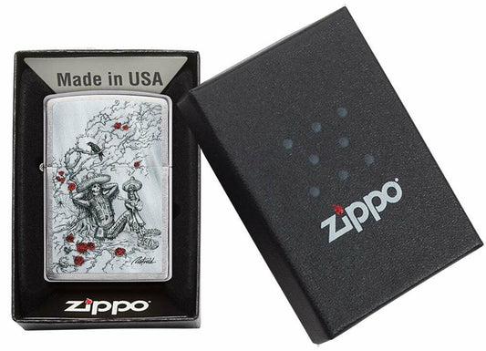 Zippo Romantic Skeleton Emblem Design, Brushed Chrome Lighter #48688