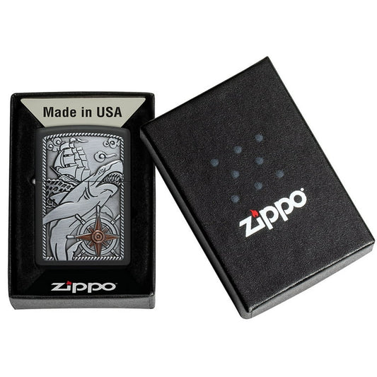 Zippo Ocean Sea Shark Design, Black Matte Lighter #48120