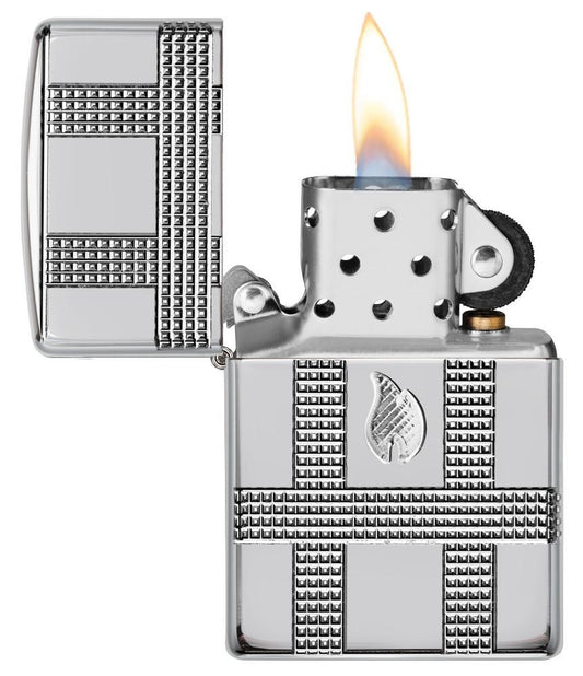 Zippo Geometric Design, High Polish Chrome Finish Armor Lighter #49079