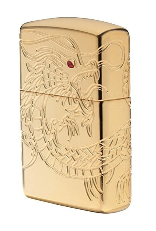 Zippo High Polish Gold Plate w/Epoxy Inlay, Asian Chinese Dragon Lighter #29265