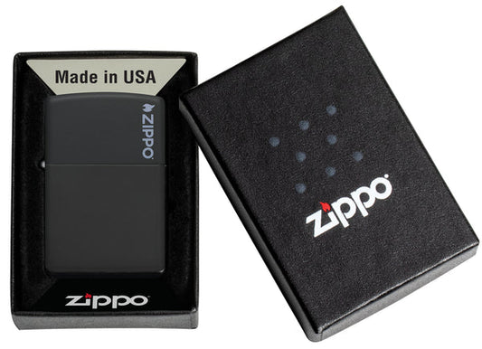 Zippo Black Matte Lighter with Logo #218ZL
