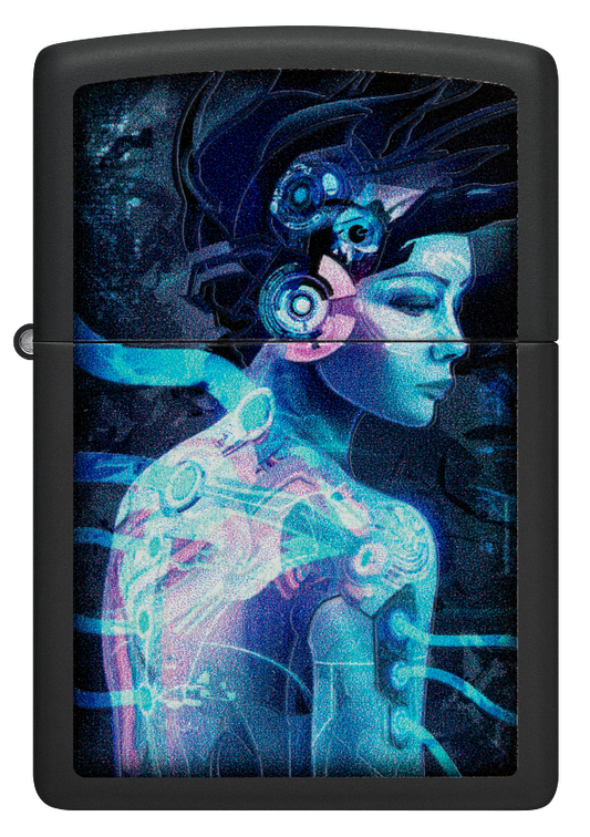 Zippo Cyberpunk Girl Black Light Design, Black Matte Lighter #48517