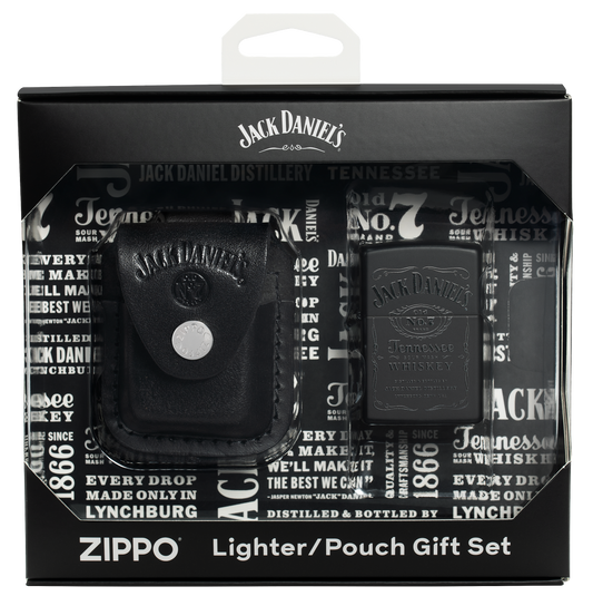 Zippo Jack Daniels Black Matte Lighter and Pouch Gift Set #48460