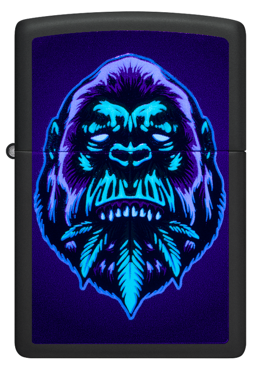 Zippo Cannabis Gorilla Black Light Design, Black Matte Lighter #48585