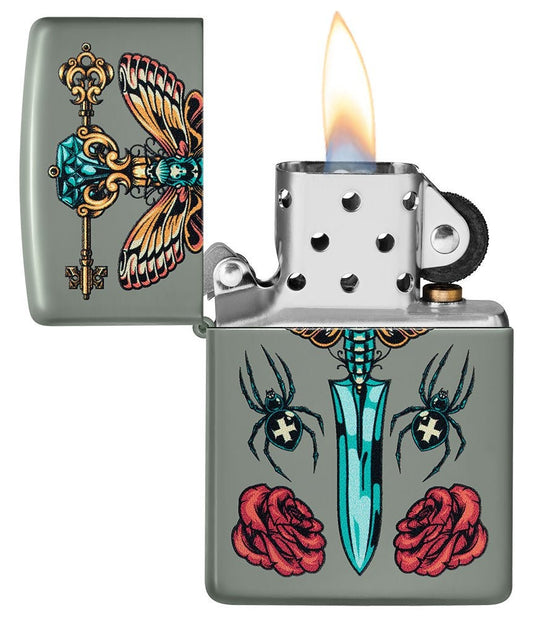 Zippo Gothic Dagger Design, Sage Finish Windproof Lighter #49860