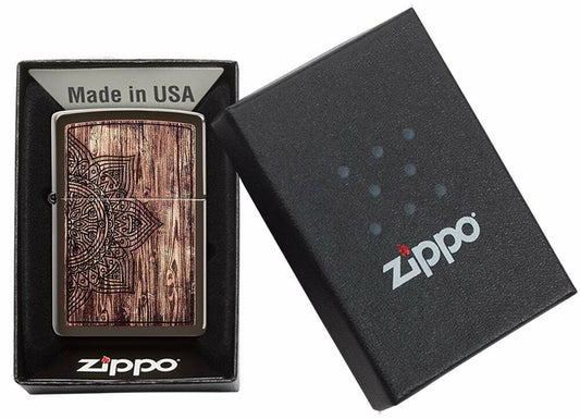 Zippo Wood Mandala Buddhism Hinduism, Brown Windproof Pocket Lighter #49184
