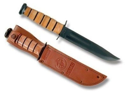 KA-BAR USMC 7" Fixed Blade, Fighting Knife, w/Brown Leather Sheath #1217CP