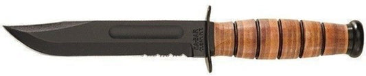 KA-BAR US Army 7" Fixed Blade Knife, Serrated Leather Handle, Brown Sheath #1219