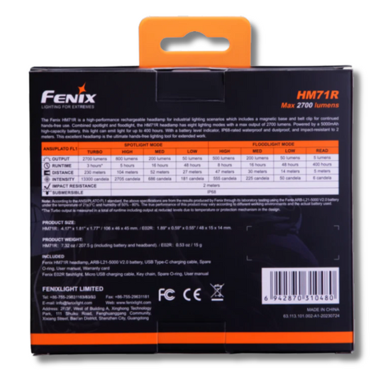 Fenix HM71R Headlamp 2700 Lumens + E02R 200 Lumen Keychain Flashlight Combo #HM71R-E02R