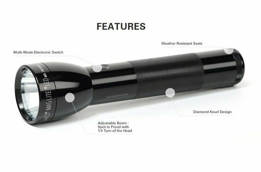MAGLITE ML25LT, LED Flashlight, 2 Cell C Flashlight, Black #ML25LT-S2016