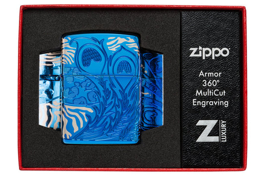 Zippo Animal Flair Design 360 High Polish Blue Armor Lighter #46926