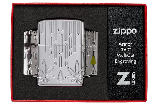 Zippo Four Leaf Clover 360 Design, High Polish Chrome Lighter #48586