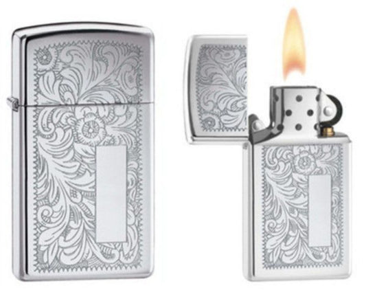 Zippo Slim Chrome Venetian Design, Good For Engraving, Genuine Lighter #1652