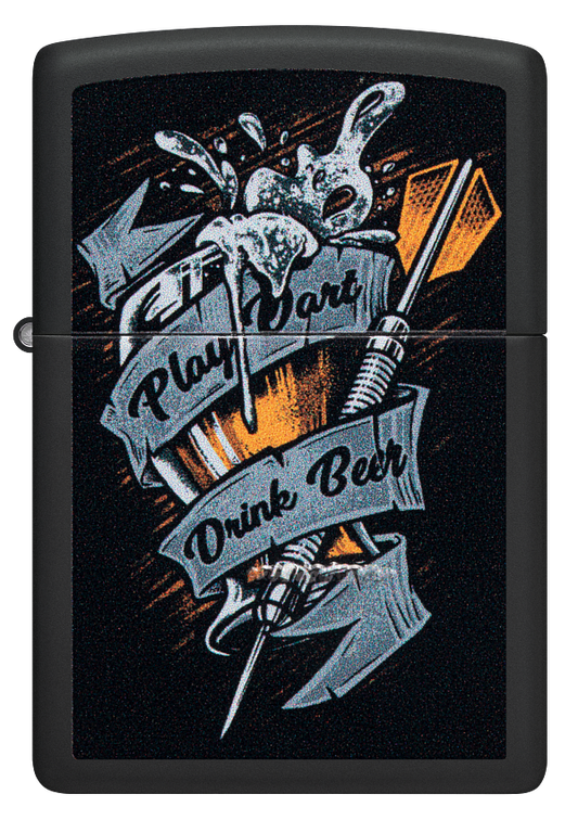 Zippo Play Darts Drink Beer, Black Matte Lighter #48679