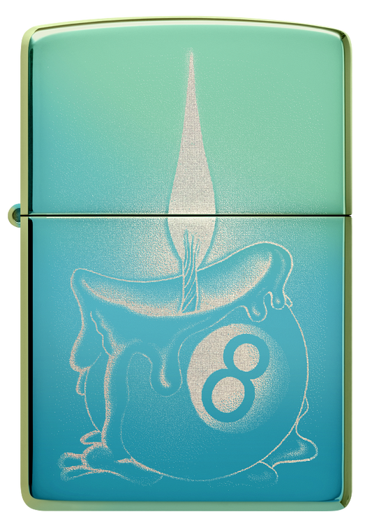 Zippo 8-Ball Candle Wax Design, High Polish Teal Lighter #48615