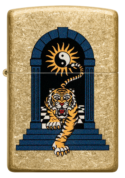 Zippo Yin Yang Tiger Design, Tumbles Brass Finish Lighter #48613