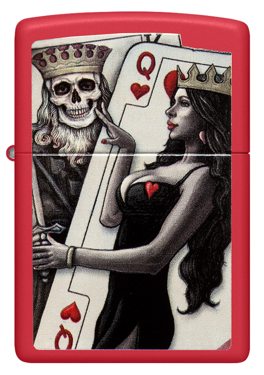 Zippo King and Queen Playing Cards, Red Matte Lighter #48624