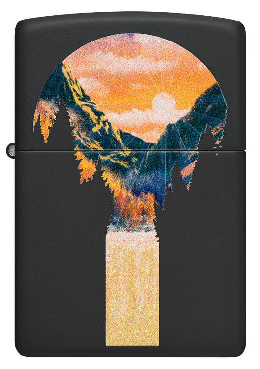 Zippo Mountain View Black Light Design, Black Matte Lighter #48676