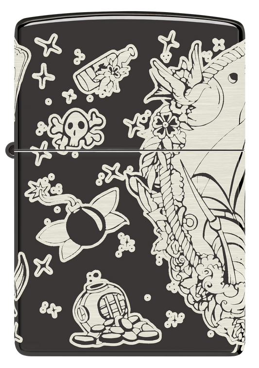 Zippo Nautical Tatto Design, High Polish Black Lighter #48398