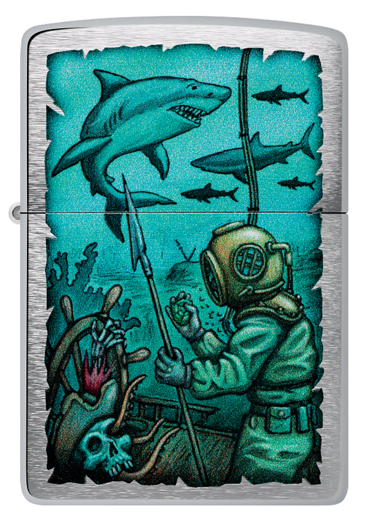 Zippo Nautical Underwater Explorer Design, Brushed Chrome Lighter #48561