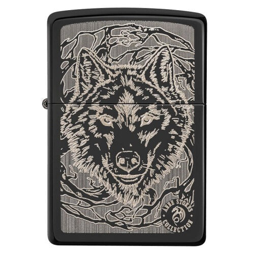 Zippo Anne Stokes Wolf Design, High Polish Black, Windproof Lighter #49443