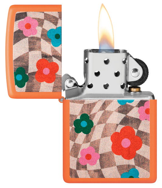 Zippo Nostalgia Flower Chessboard, Orange Matte Lighter #48718