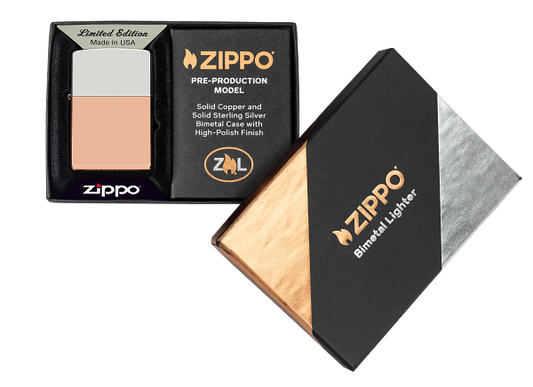 Zippo Bimetal Case, Solid Copper and Sterling Silver Lid Lighter #48694