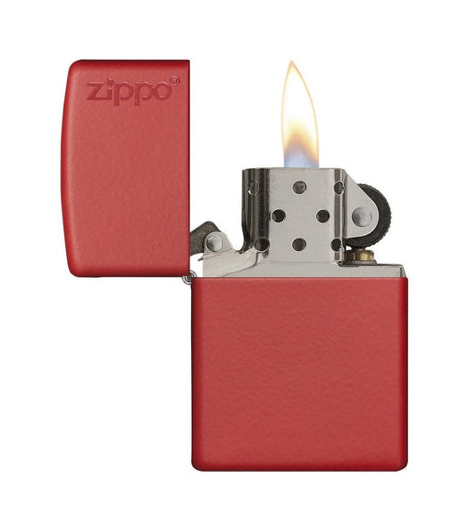 Zippo Red Matte Lighter, w/ Logo, Regular Classic #233ZL