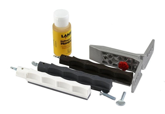 Lansky Natural Arkansas Sharpening System, 3 Stones + Honing Oil + Clamp #LKNAT