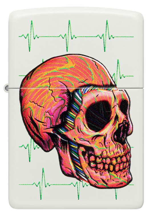 Zippo Skull EKG Color Image Design, White Matte Lighter #48659