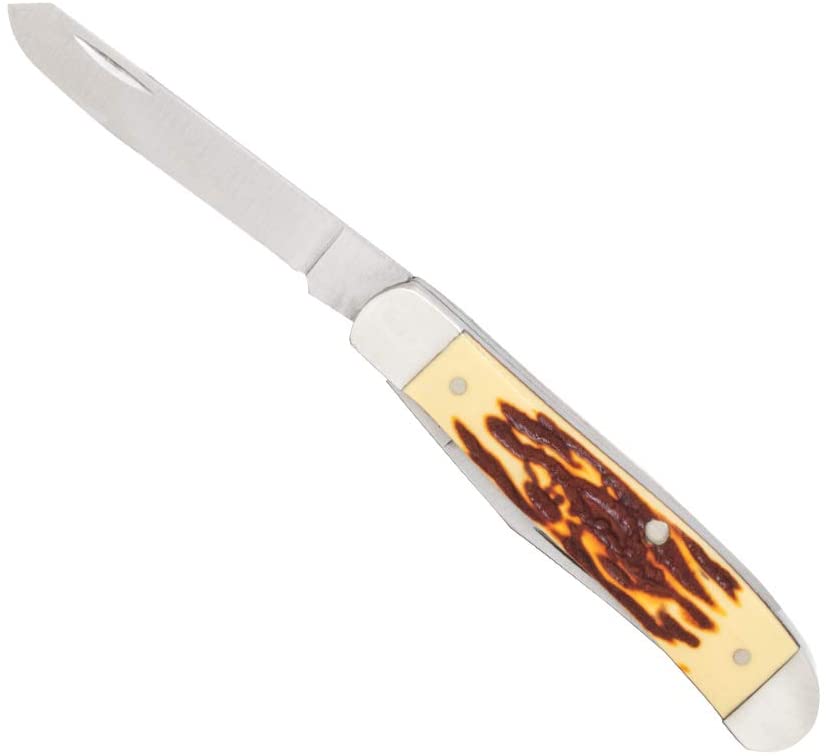 Bear & Son Stainless Steel Mini Trapper Knife with Stag Delrin Handle #SD07