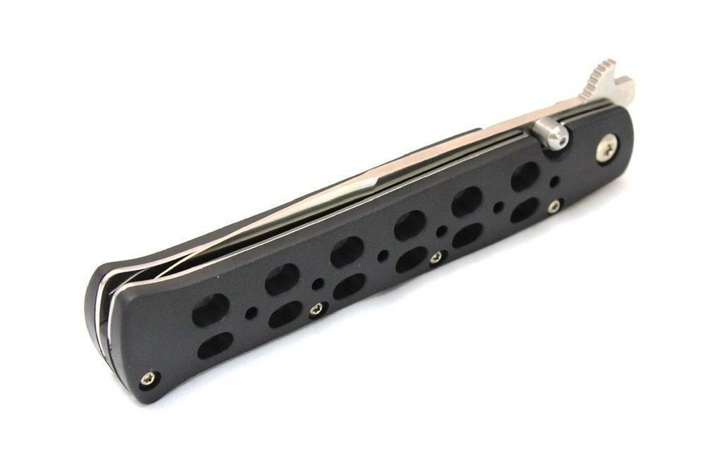 Ti-Lite® tactical folders feature Japanese made AUS 8A stainless steel blades with a bead blast finish, razor sharp edges and sturdy, needle sharp points. The CNC milled handles are forged from super tough 7075 Aluminum billets and are given an attractive bead blast surface and finished with a protective EDP (Electric Discharge Plating) coating. And for maximum strength and safety, we have equipped our Ti-Lites® with our patent pending, stainless steel leaf spring locks (proven, in our tests, to hold 130 lbs). For ease of carry, the Ti-Lites® come equipped with a small, but unobtrusive steel pocket clip, and can be opened rapidly by using the thumb studs or by snagging a quillon on the edge of your pocket as you draw your knife out.