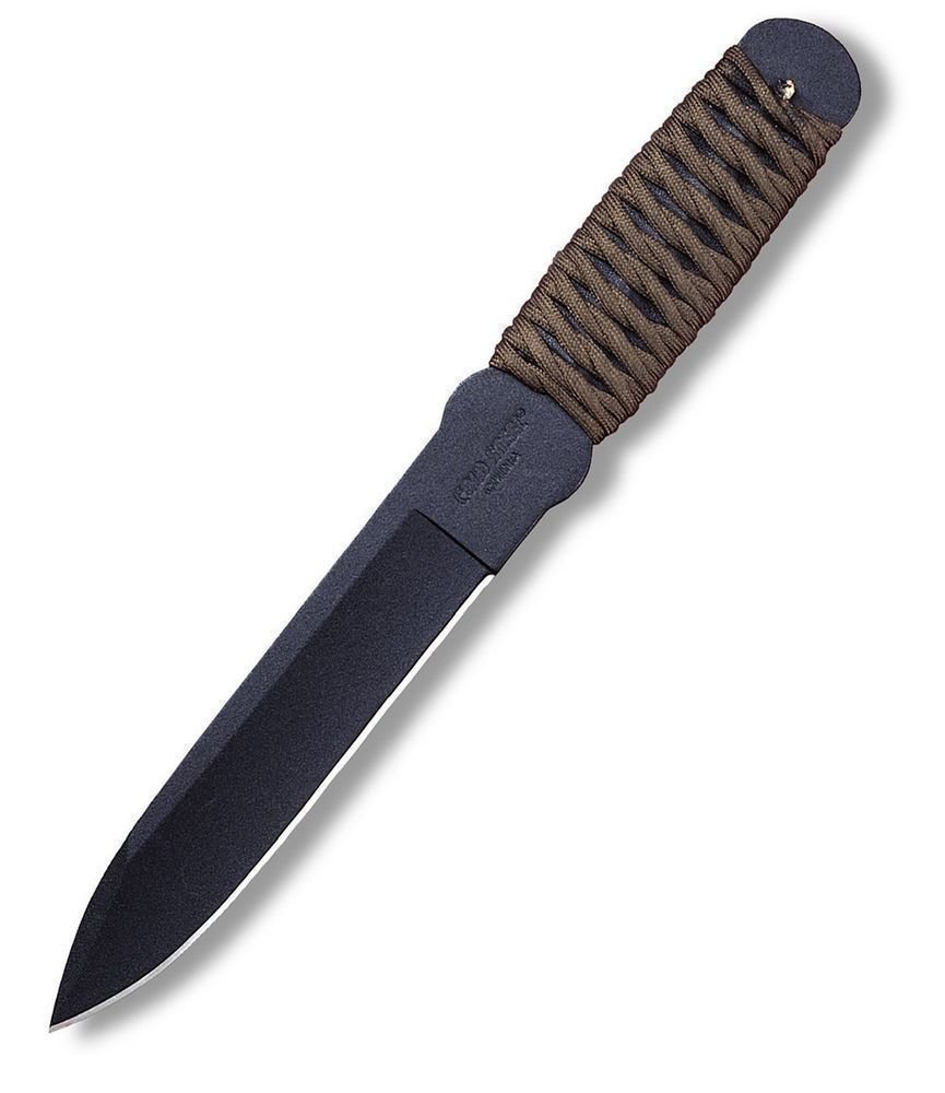 There are a bewildering number of throwing knives on the market these days, and it seems that most of them are made out of cheap steel that bends or, in the worse case scenario, stainless steel that breaks. That's why we made the True Flight Thrower. The Cold Steel® True Flight Thrower beats the competition by a wide margin. For strength, we use 1055 carbon steel and finish it with a black, baked-on protective coat. This makes for a hard, yet resilient blade that will “bounce-back” from any throw. And for versatility, the True Flight Thrower has a utility edge that will stand-up to your toughest chores.