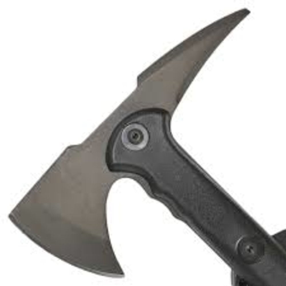 Our War Hawk combines the tactical styling and material used in our popular Trench Hawk with historically inspired design elements from fighting hand-axes of old.With its wide “bearded” axe head and curved reinforced reverse Tanto style spike it is a thoroughly modern tactical tomahawk and breaching tool! Each War Hawk is supplied with a patented articulated Secure-Ex sheath.