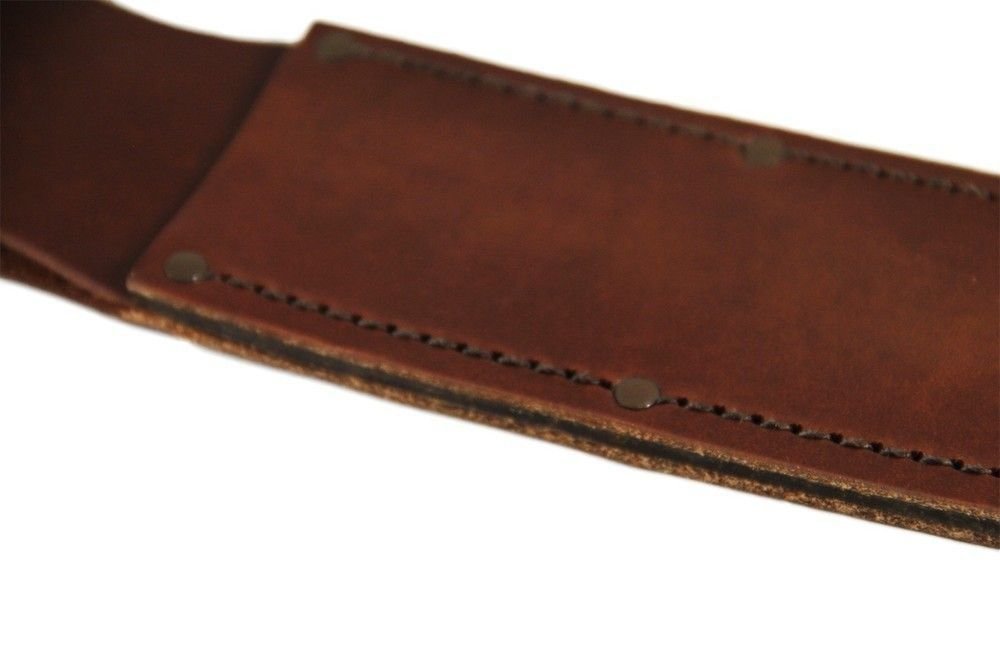 KA-BAR Plain Leather Sheath for 7in Knives 1-1217I-1 is a handsome, reliable method of carrying your tactical or utility knife. Crafted from supple leather, this KA-BAR knife sheath will keep prevent your blade from cutting when you don't want it to, in addition to preserving its edge. KABAR Leather 7" Knife Sheath has been designed for KA-BAR's series of tactical and utility knives with a seven inch blade. This knife sheath will mount easily to your belt, making your knife readily accessible for action. Carry your knife in style and security with the KA BAR Plain Leather Tactical / Utility Knife Sheath.