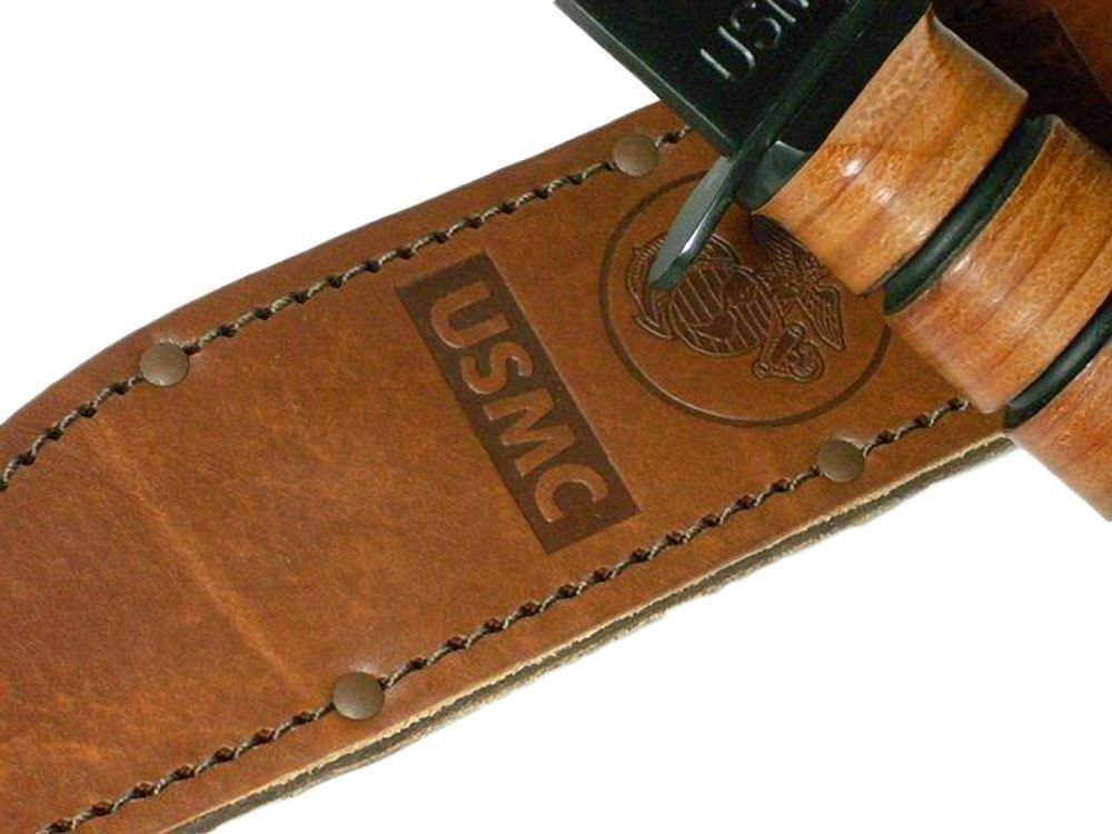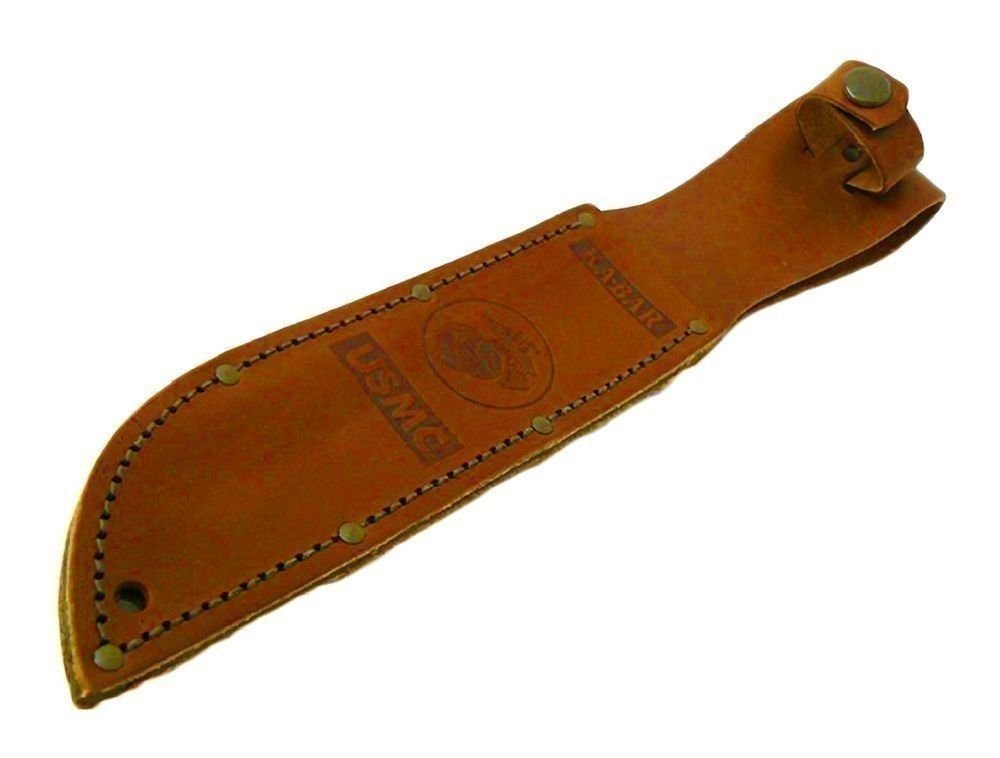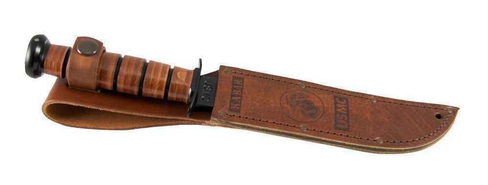 KA-BAR USMC Knife + Brown Leather Sheath, Marines, 7" Blade Serrated Edge #1218