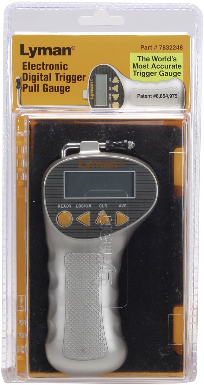 Lyman’s revolutionary Digital Trigger Pull Gauge is designed to be the fastest and most accurate trigger pull gauge available. The state-of-the-art strain gauge technology allows for accuracy of 1/10 ounce/2 grams. The gauge will read to a maximum 12lb/5.4kg and features a large, easy-to-read LCD display. To operate, simply press the ready button, hook the roller around the trigger of your firearm and pull until the trigger releases. (Make sure firearm is not loaded.) The gauge will display and hold the exact trigger pull weight. For a new reading, just press the ready button and repeat. The gauge will also give you an average of up to the last 10 readings. Switch from ounces to grams with the push of a button. The fully adjustable rod works on any firearm. This is the perfect tool for target shooters, silhouette shooters, gunsmiths, hunters, or anyone who wants to adjust their trigger pull weight accurately and easily. Works with 2 AAA batteries (not included).