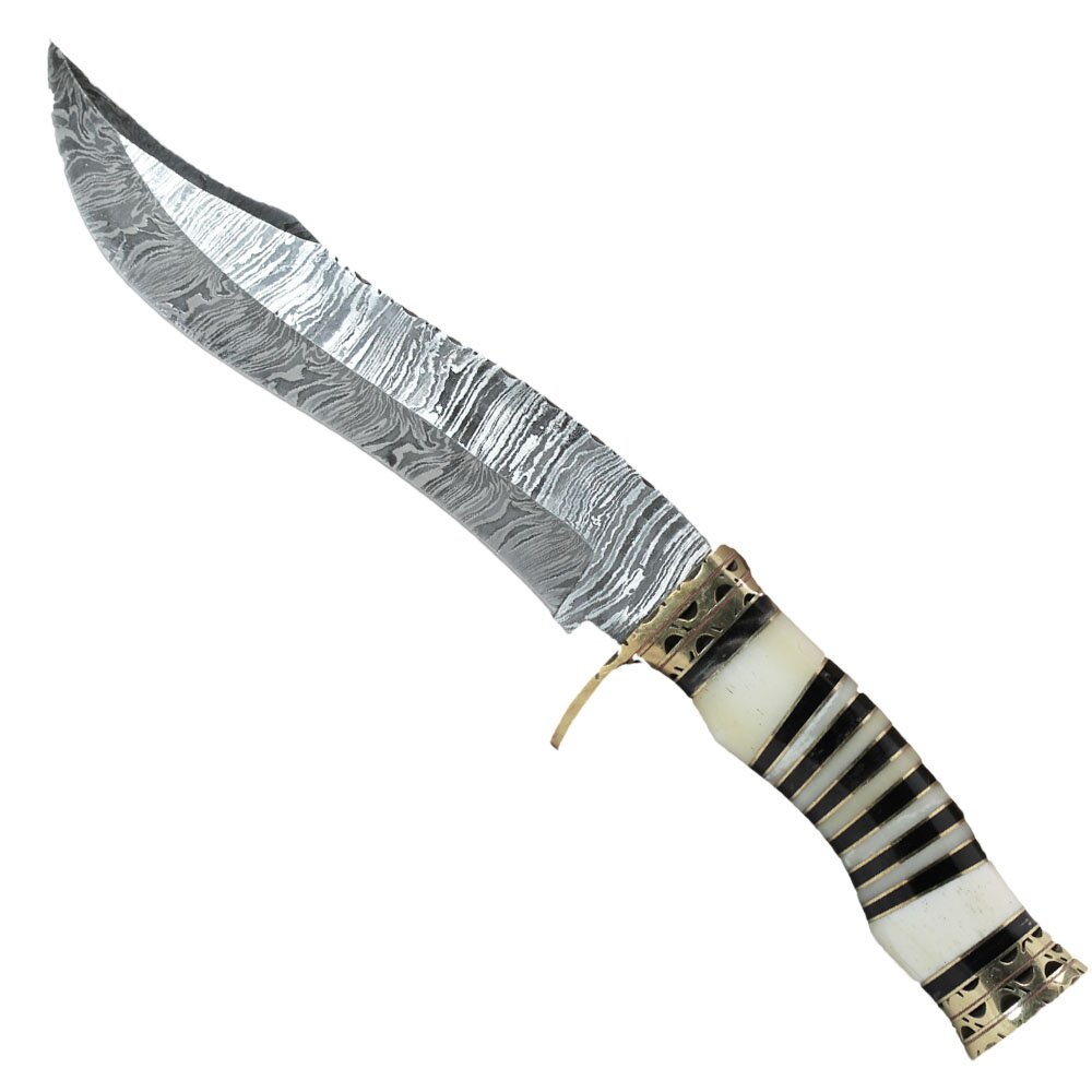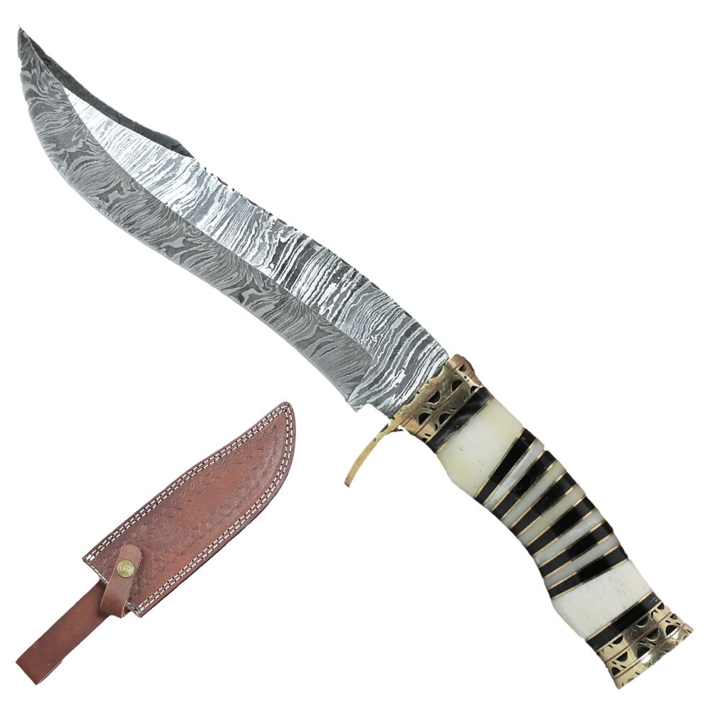 Scorpion Mart Handmade Damascus Steel Knife, Camel Bone Handle + Sheath #KNIFE7