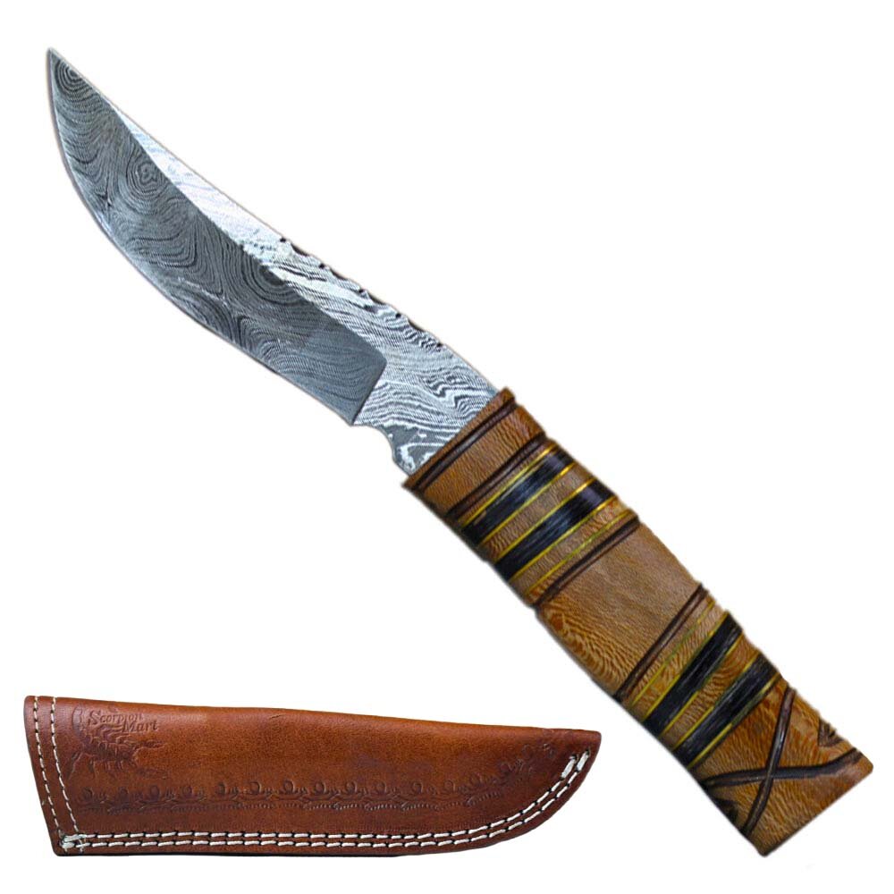 Scorpion Mart Handmade Damascus Steel Knife, Rosewood Handle + Sheath #KNIFE26