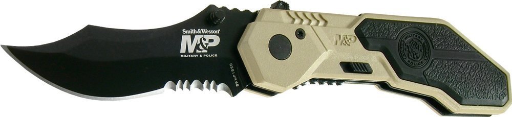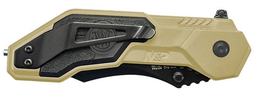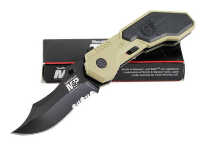 Tactical reliability meets everyday convenience with the Smith & Wesson M&P SWMP1BSD Folding Knife. Featuring M.A.G.I.C. assisted opening, a partially serrated stainless steel blade, and a rugged desert tan handle, this knife is built for quick deployment and dependable performance-on duty or off.