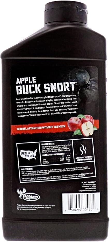 Deer won't be able to get enough of Buck Snort™. Our proprietary formula disguises minerals in a highly concentrated liquid that smells and tastes just like real apples. Simply squirt where you want it and watch the deer come sniffin'. You'll have a patterned, healthy herd faster than you can say "Wildgame Innovations." Works year-round for incredible attraction power.